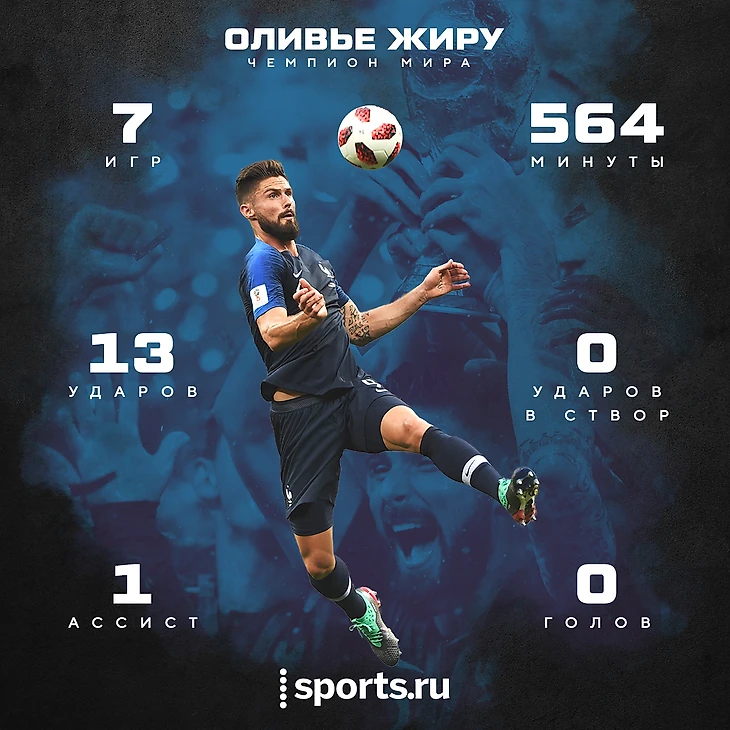 20:43 Жиру ни разу не пробил в створ ворот, отыграв 546 минут на ЧМ-2018. Занимательная статистика.