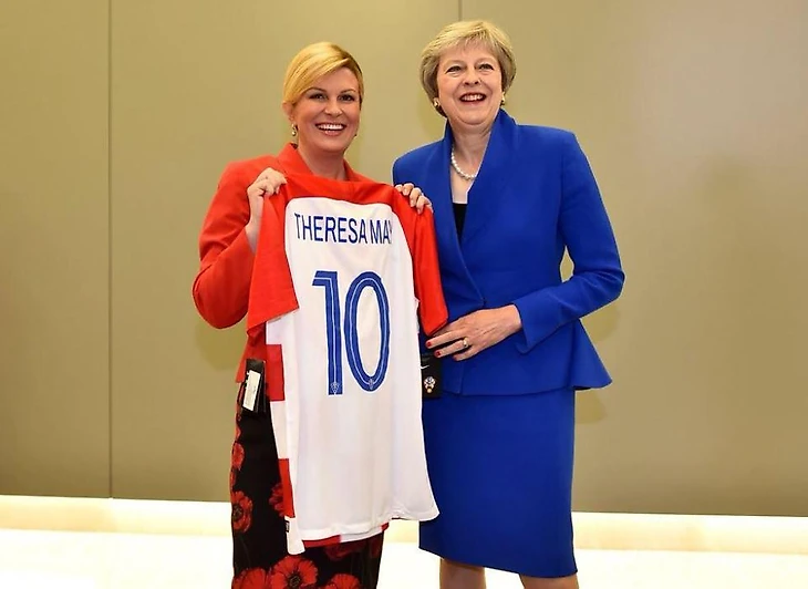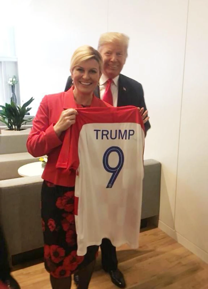 Первые две красно-белые футболки национальной сборной из рук президента Хорватии достались премьер-министру Великобритании Терезе Мэй и президенту США Дональду Трампу 11 июля во время саммита НАТО, проходившего в Брюсселе. Терезе Мэй в преддверии полуфинала Хорватия-Англия досталась футболка с номером 10, а Дональду Трампу — с надписью TRUMP и девяткой, под которой выступает нападающий сборной Андрей Крамарич.