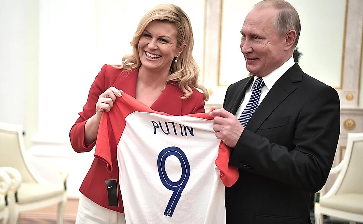Президент Хорватии подарила футболки Путину и Трампу. С одинаковым номером