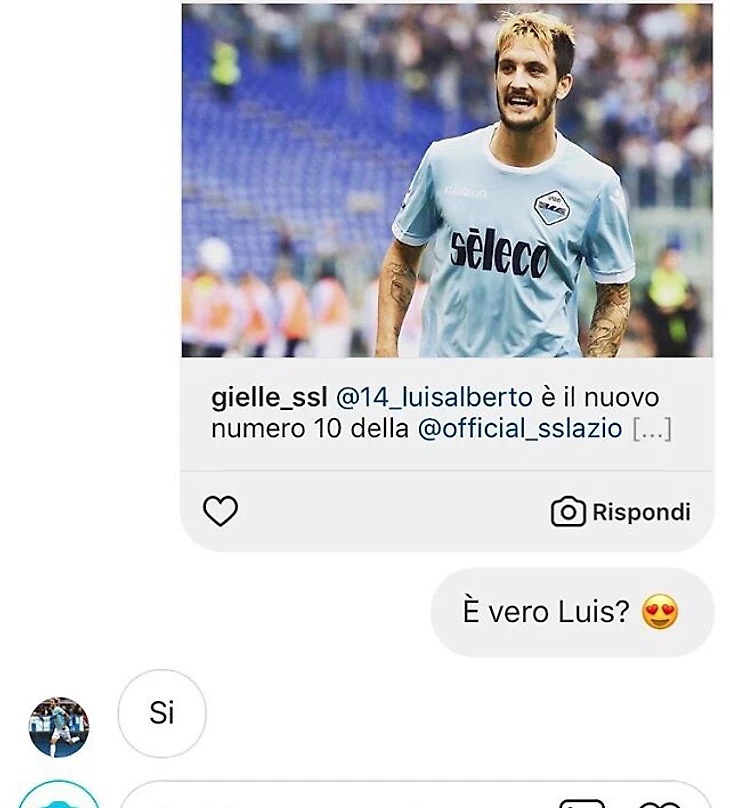 Полузащитник «Лацио» Луис Альберто подтвердил, что с нового сезона будет носить «10» номер на спине, освободившийся после ухода Фелипе Андерсона.