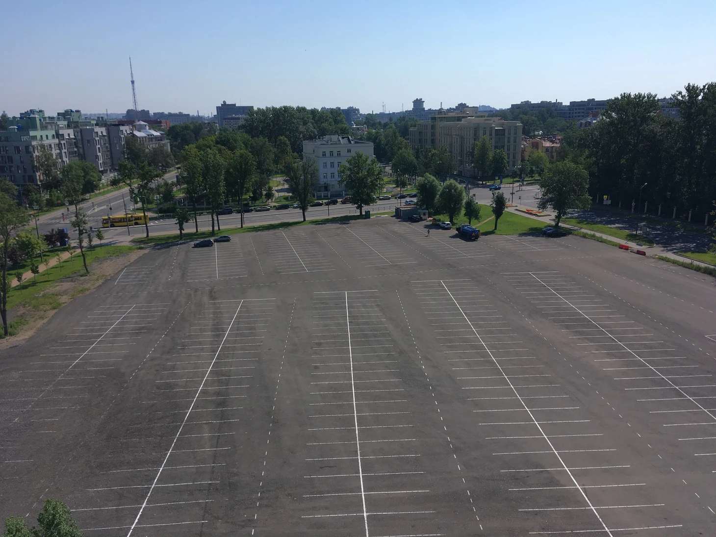 В преддверий чемпионата на Крестовском сделали большую парковку. Буквально в одном перекрёстке от входа в парк, который ведёт к стадиону.