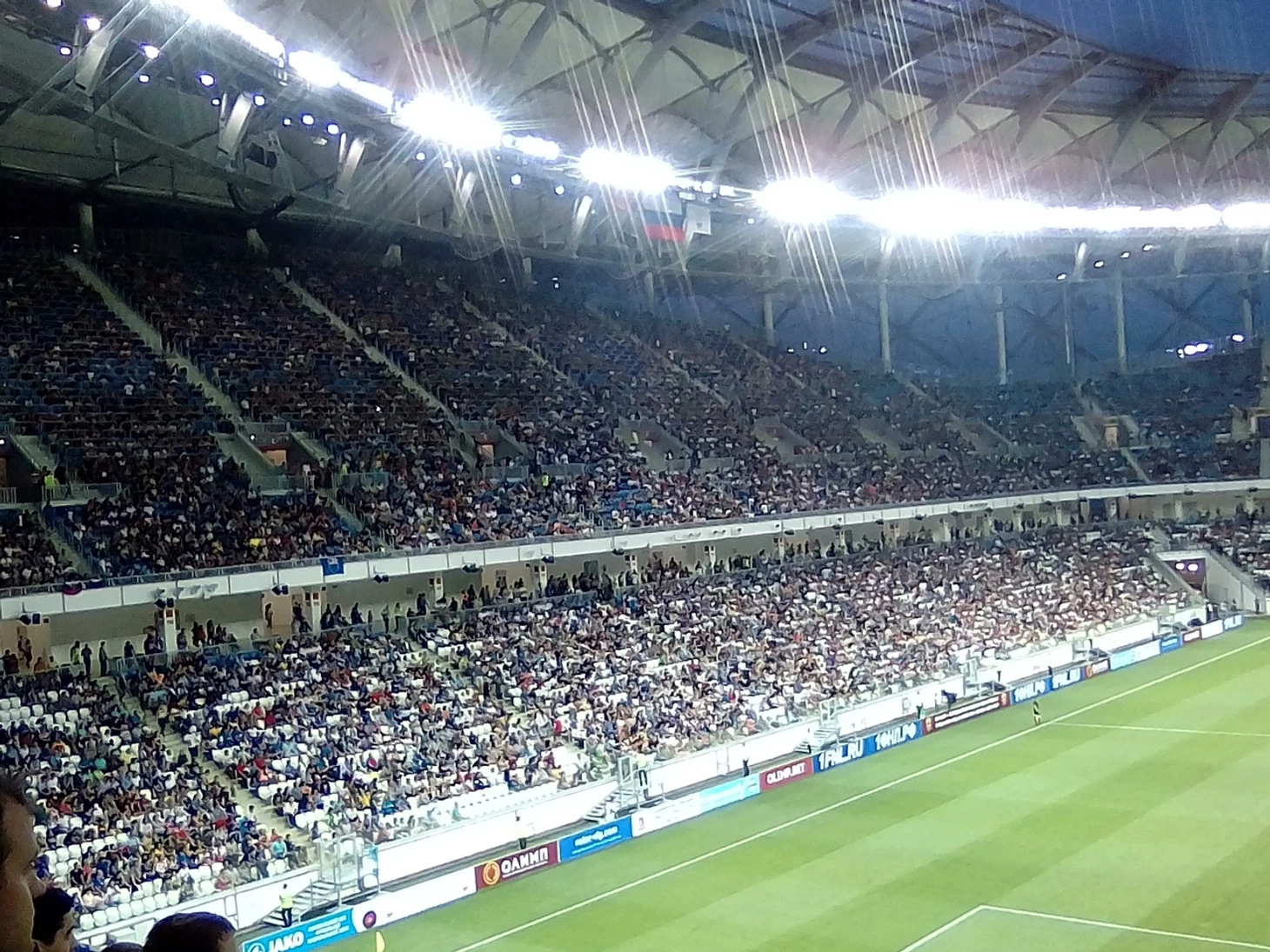 Это был первый матч на этом стадионе после Чемпионата мира. На матч ФНЛ пришло 30611 человек!!! Я повторюсь, на матч ФНЛ пришло 30611 человек. Это просто нечто.
