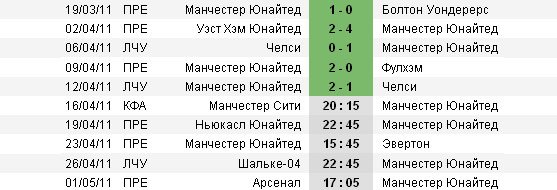 В последнем туре манкунианцы обыграли лондонский «Фулхэм», и теперь с 69-ю очками, возглавляют турнирную таблицу, опережая «Арсенал» на 7 очков. Впереди предстоит серия из непростых матчей, но все искренне верят, что сэр Алекс Фергюсон как всегда выведет команду в чемпионы.