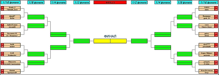 1/8 финала: 7-12 туры (6 матчей). 16 человек