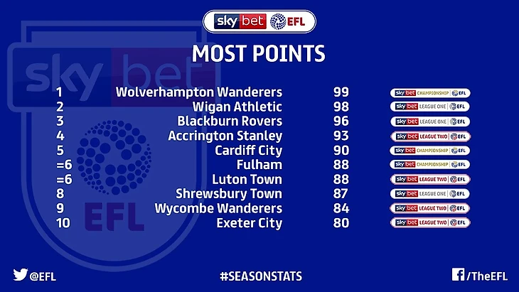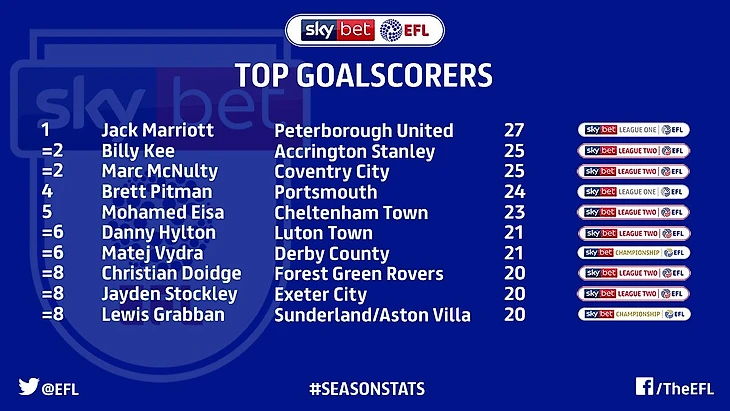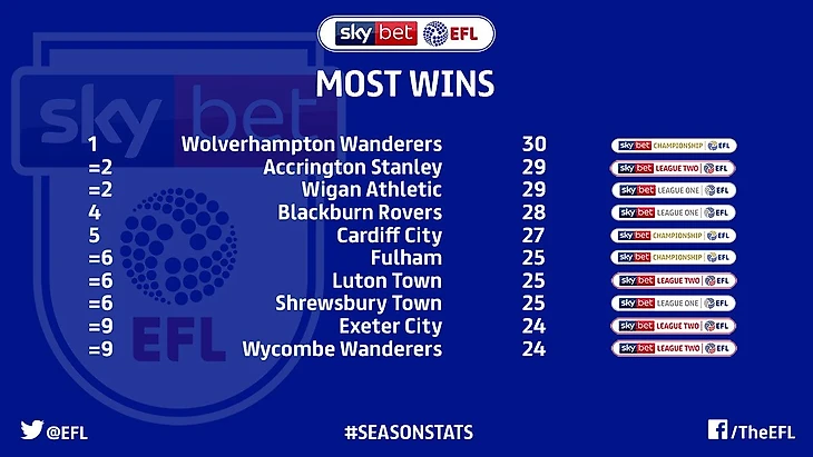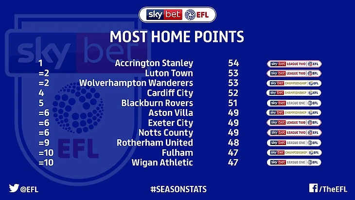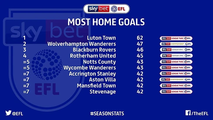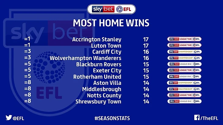 *Статистика учитывала только матчи в лигах (Чемпионшип, Лига Один и Лига Два), кубковые матчи и другие турниры сюда не попали.