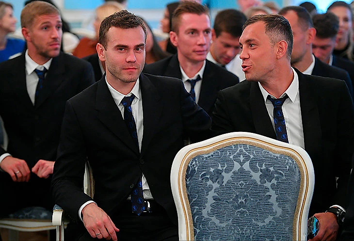 Второй кавалер Ордена почета Сергей Игнашевич высказался еще короче («Безумно рады, что всего лишь своей игрой в футбол смогли осчастливить миллионы россиян, особенно детей»), а остальные игроки получали президентские грамоты и сразу уходили на свое место. Все, кроме Артема Дзюбы, который не теряет смелость даже в Кремле.