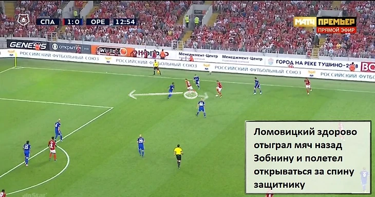 Уже позже эту теорию подтвердил Каррера, сказавший, что у Александра неплохие шансы появиться в основе в первом матче сезона. Ломовицкий вышел на правый фланг атаки. Несмотря на то, что он левша, Александр 82% игр начинает именно на этой позиции — где можно сместиться в центр, убрать мяч под рабочую ногу и сделать передачу. В игре с «Оренбургом» несколько таких эпизодов прошли. Но чаще всего он разыгрывал мяч с партнером под пас в одно касание и рвал в свободные зоны.