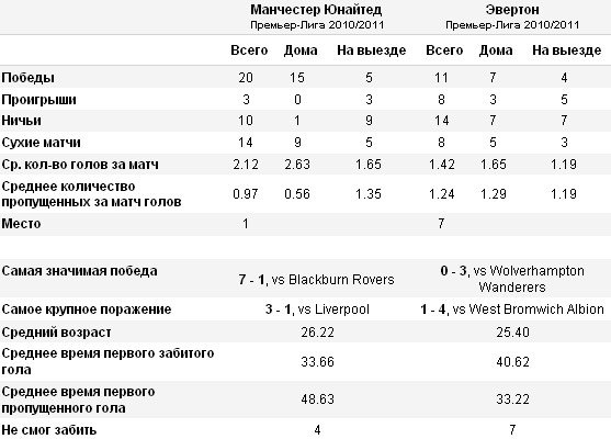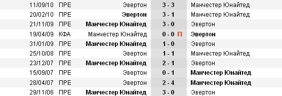 В последних двух матчах с «Манчестер Юнайтед» «Эвертон» забил шесть мячей, хотя оба матча проходили на «Гудисон Парк». В матче первого круга нынешнего сезона соперники сыграли вничью 3-3, а в феврале 2010 года «Эвертон» победил дома 3-1.