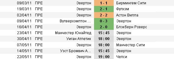 Последние 5 матчей "Эвертона"