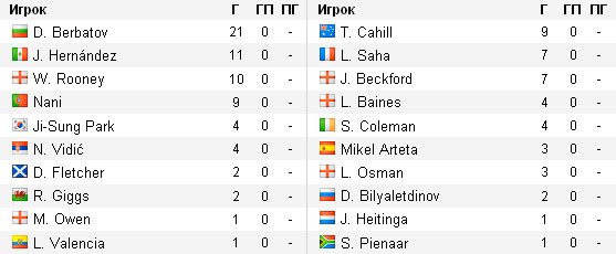21 гол Димитара Бербатова позволяет ему лидировать в споре бомбардиров Премьер Лиги, это его лучшее бомбардирское достижение. Болгарину нужно забить 2 мяча до отметки 50 голов за "Юнайтед".