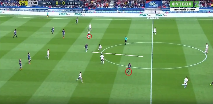 Бразилец видит свободные зоны не только возле штрафной соперника. При начале атак он всегда старается переключить владение команды в ту зону, где меньше игроков соперника.
