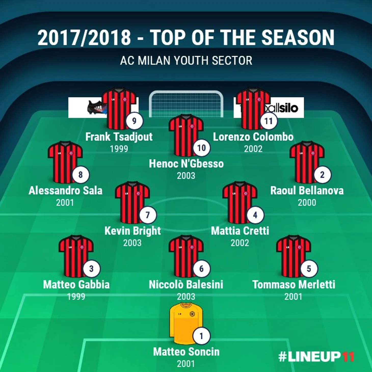 Символическая сборная молодёжного сектора миланского клуба по итогам прошлого сезона. Новый директор Марио Беретта не сомневается в больших возможностях вновь сформированного штаба футбольной академии красно-чёрной команды.