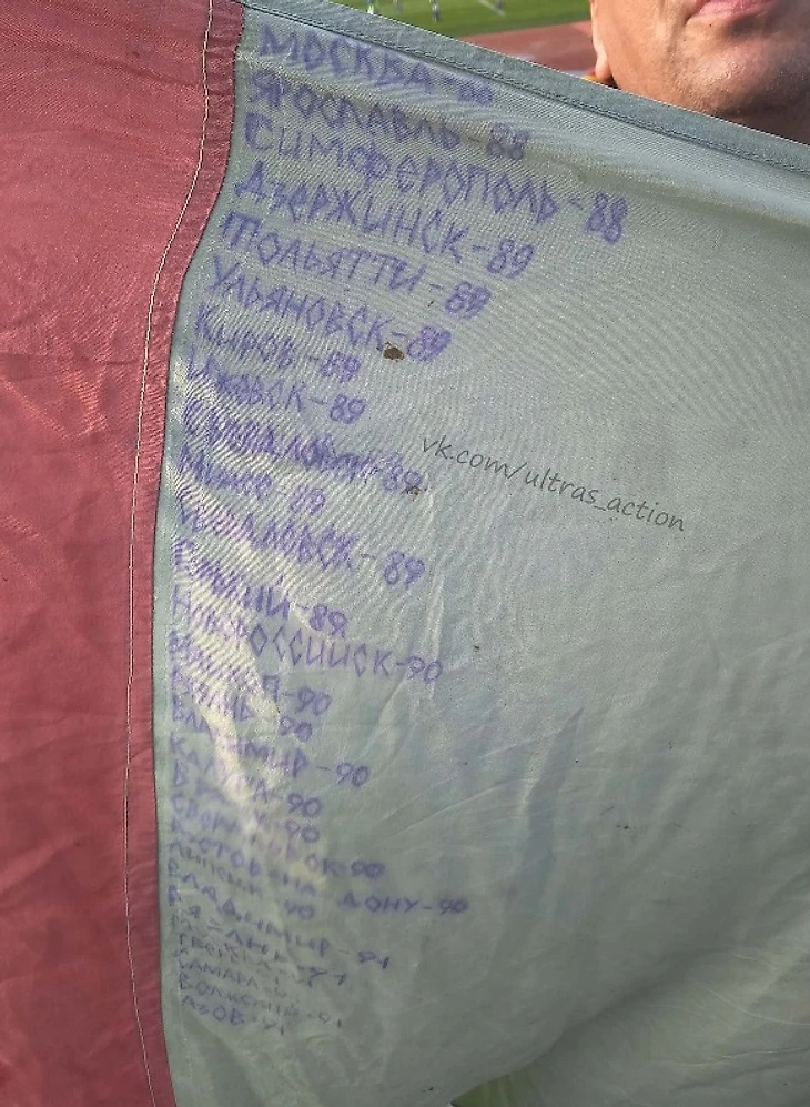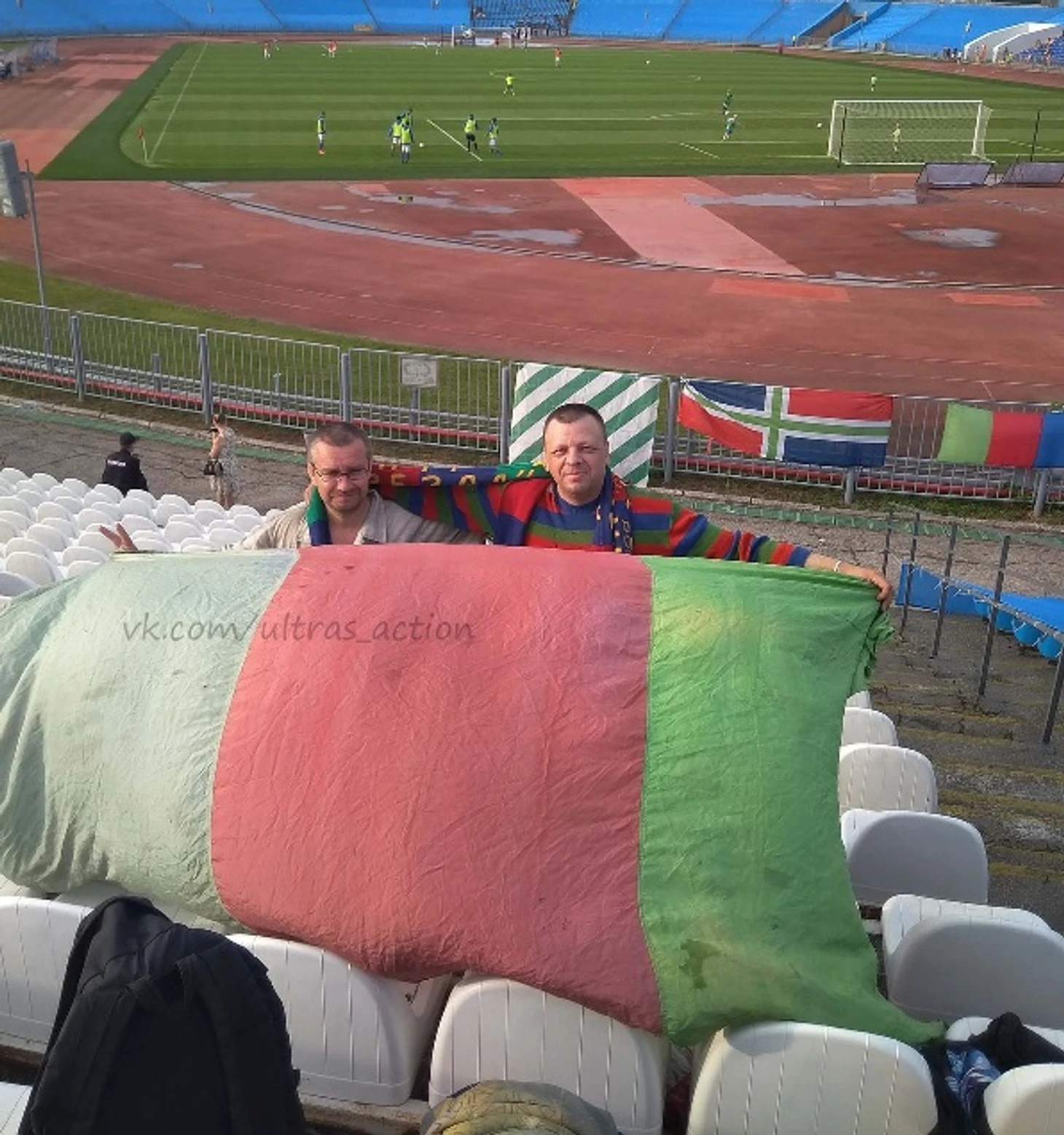 Этот матч не могли не удостоить своим вниманием старые фанаты "Звезды" Саша Пионер и Бензин, которые первый выезд за пермскую команду пробили еще в далеком 1988 году. На секторе парни вывесили сине-красно-зеленый баннер, на котором отмечены все выезды полотна по СССР. На Пионере (на фото - справа) также можно увидеть свитер в цветах клубах, связанный в конце 1980-х годов на знаменитой текстильной фабрике в подмосковном Михнево, и его знаменитый легендарный шарф длиной более двух метров.