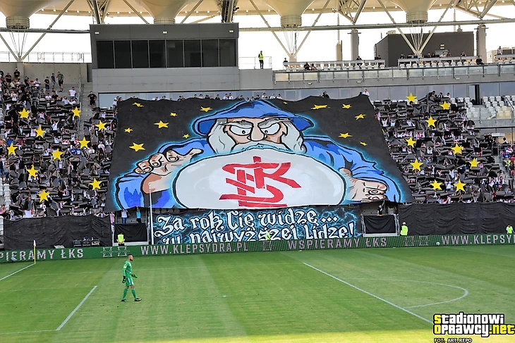 «ЛКС» вышел в подэлитный дивизион. Фанаты надеются на скорое повышение в Экстракласу. Собственно, с такой идеей и готовился перф «Через год вижу тебя в высшей лиге».
