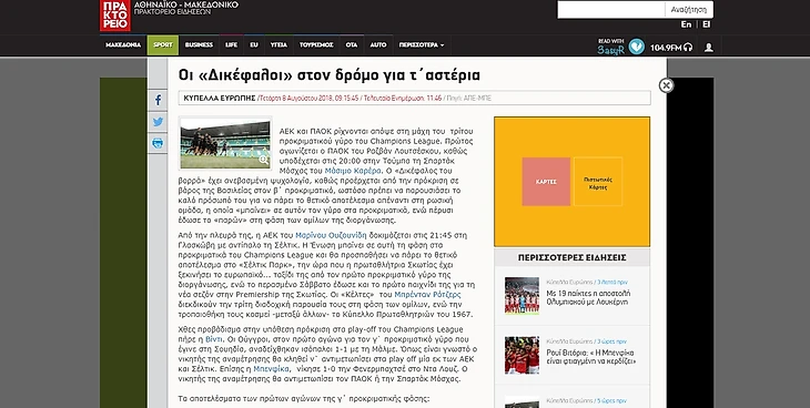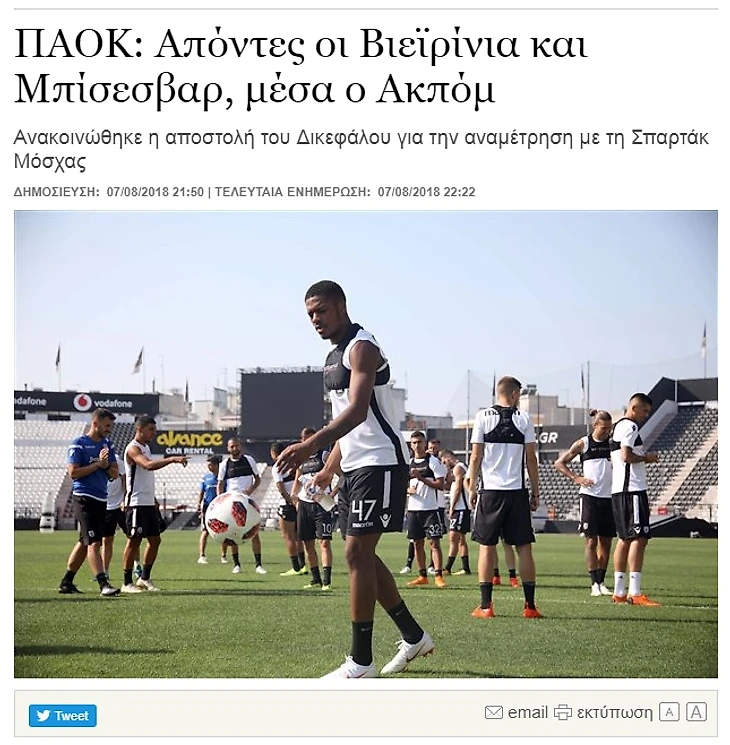 Реакция греческих СМИ перед первым матчем ЛЧ «Паок» vs «Спартак» и ориентировочные составы команд