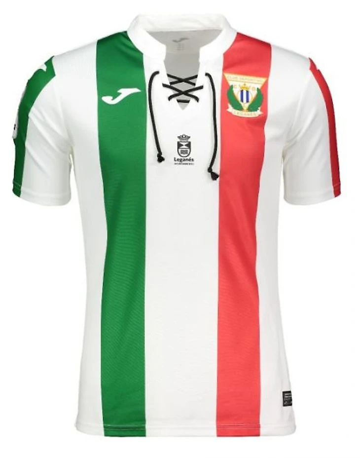 Как оригинально представить форму? Кажется, в Joma знают. Видеопрезентация интригующая и очень добрая. Второй комплект – отсылка к 1930 году, когда «Леганес» выступал примерно в таких цветах. Три полосы красного, белого и зеленого цвета на футболке и продолжение на рукавах подчеркивают легкость комплекта, а шнуровка на воротнике отправляет нас на 90 лет назад.