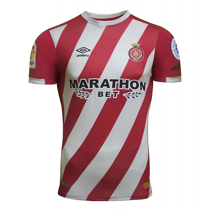 Во время разработки учитывался факт: 65 % команд примеры используют вертикальные полосы на своих футболках. Поэтому от них решили отказаться. Диагональные красно-белые линии изображены на щите клуба. При этом вряд ли «Жирона» сыграет в этом комплекте против «Атлетика», у которого вертикальные полосы.
