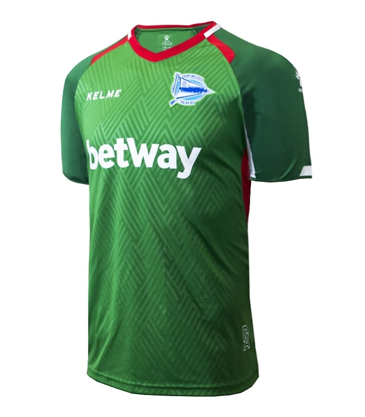 А вот гостевой комплект удивил. Баски говорят, что это уникальный комплект. Никогда «Алавес» не выбирал вторым комплектом зеленые футболки за исключением 2011 года, когда Виктория-Гастейс стала экологической столицей Европы. С близкого расстояния виден незамысловатый узор.