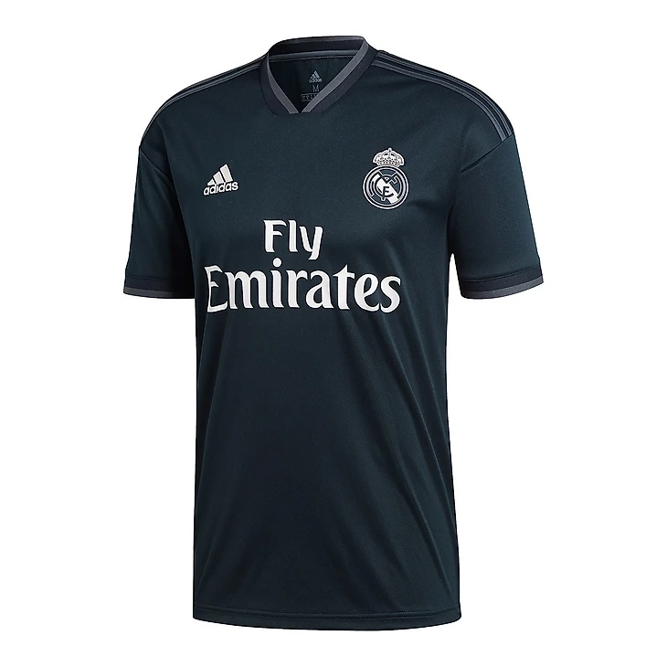 Мадридцы всегда стараются чем-то удивить, но в первом комплекте ничего интересного и все по классике: красная полоса по диагонали футболки, черные вставки по всем краям, где только можно. Давайте вместе выберем изюминку этой формы: водяной знак (эмблема) или надпись «мужество» на спине в районе поясницы.