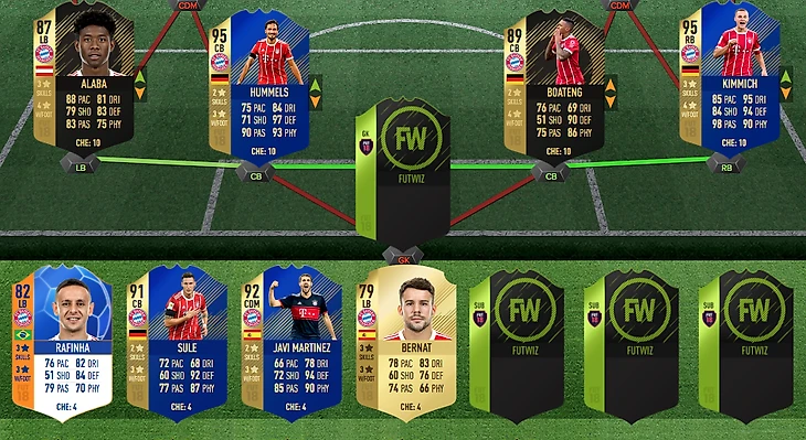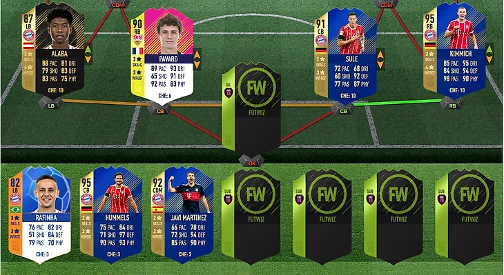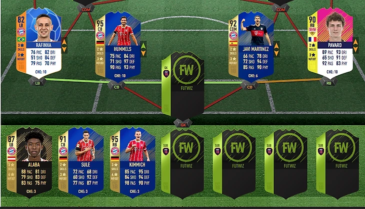 4 Фланговых защитника (Йосуа Киммих, Дэвид Алаба, Рафинья, Хуан Бернат)