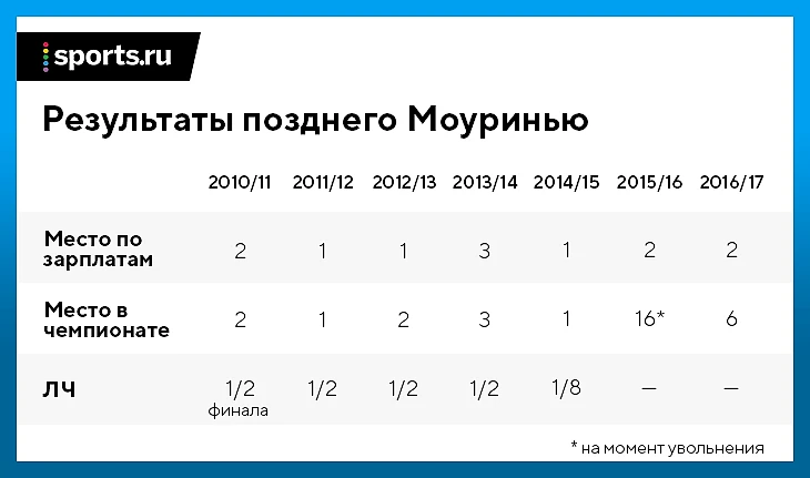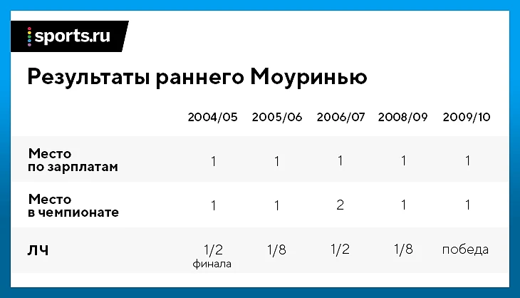 А это Жозе после 2010-го. Данные за прошлый сезон не меняют картины: 2-е место с 1-й командой по зарплатам и вылет в 1/8 финала ЛЧ.