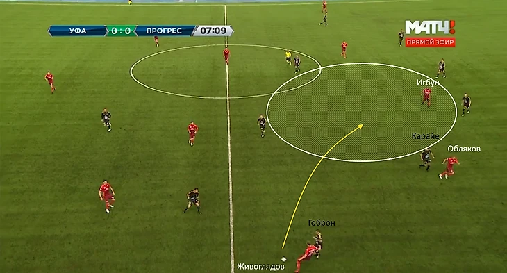 "Прогрес" играл по схеме 4-2-3-1. И без мяча — тоже. Но далеко не всегда это было удачно
