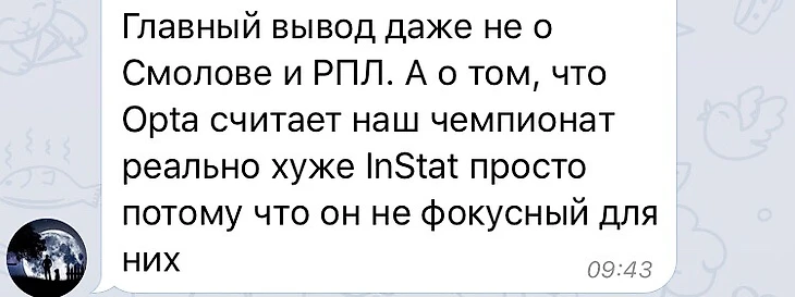 В это же время серьезные мужчины говорят о другом. Спор между ведущими футбольными аналитиками страны приобрел новый смысл, оголив проблему трансфера Смолова с неожиданной стороны. Анализ Opta, руками Вадима Лукомского, сказал нам одно. Ответ от InStat не заставил себя долго ждать и сказал немного другое.