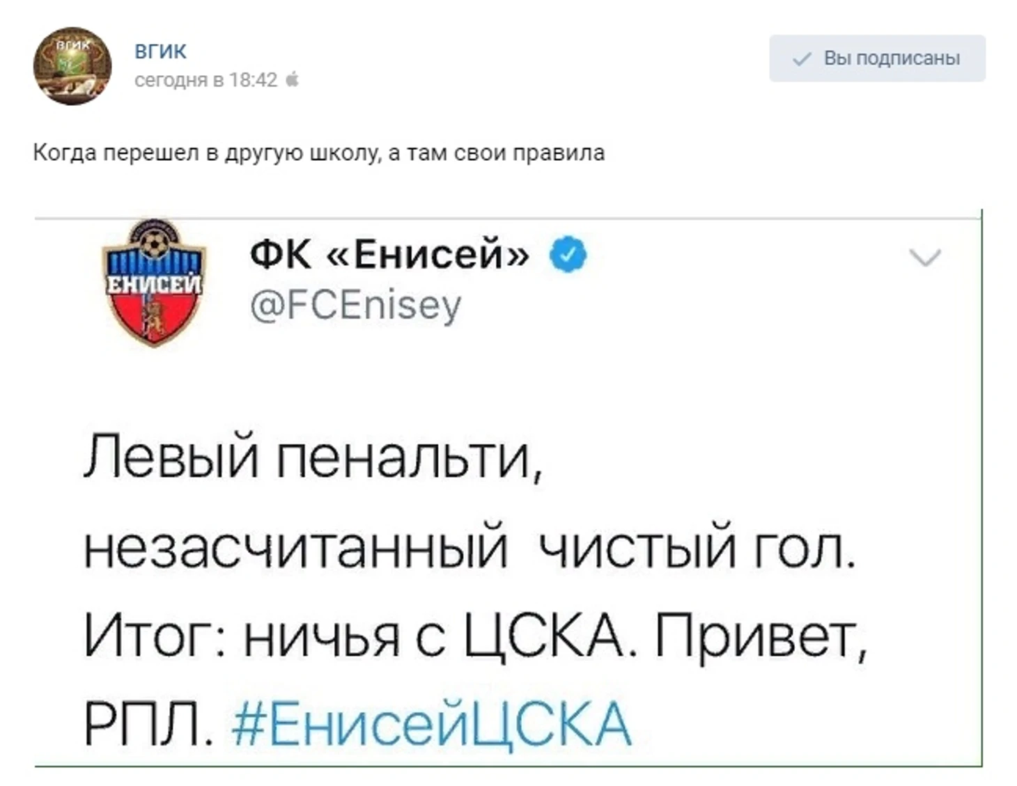 Ничья «ЦСКА» и «Енисея» в 7 лучших мемах дня