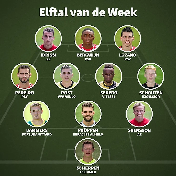 18 – восемнадцатилетний вратарь «Эммена», клуба-дебютанта Эредивизи, Кьелл Схерпен стал главным героем встречи в Гааге. Гости из провинции Дренте сенсационно одержали победу в стартовом туре (1-2) благодаря мячам Гленна Бейла и Анко Янссена, а также сейвам молодого кипера.