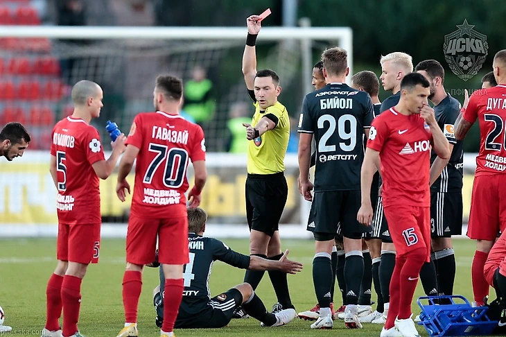 На 50-й минуте субботней игры арбитр Роман Галимов показал армейцу прямую красную карточку за то, что он в центре поля проявил агрессию и умышленно ударил Фегора Огуде ногой в бедро.