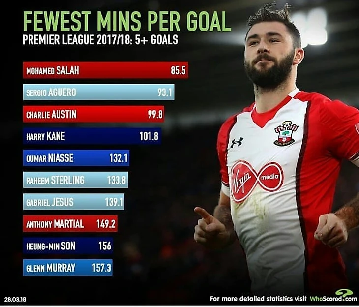Получив свой шанс на выход в старте в прошлом сезоне, Остин им тут же воспользовался, сделав дубль «Эвертону», затем забив «Борнмуту», «Арсеналу» и «Хаддерсфилду». 5 голов в 7 матчах. Это было светлым пятном команды в сезоне 17/18. Второй всплеск команды пришелся на финиш сезона, когда Чарли вышел из лазарета.