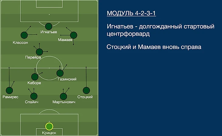 Интересно, что еще в первом тайме схожая конфигурация само собой образовалась на поле. Не она ли натолкнула Мусаева на это решение? Ладно, домыслы.