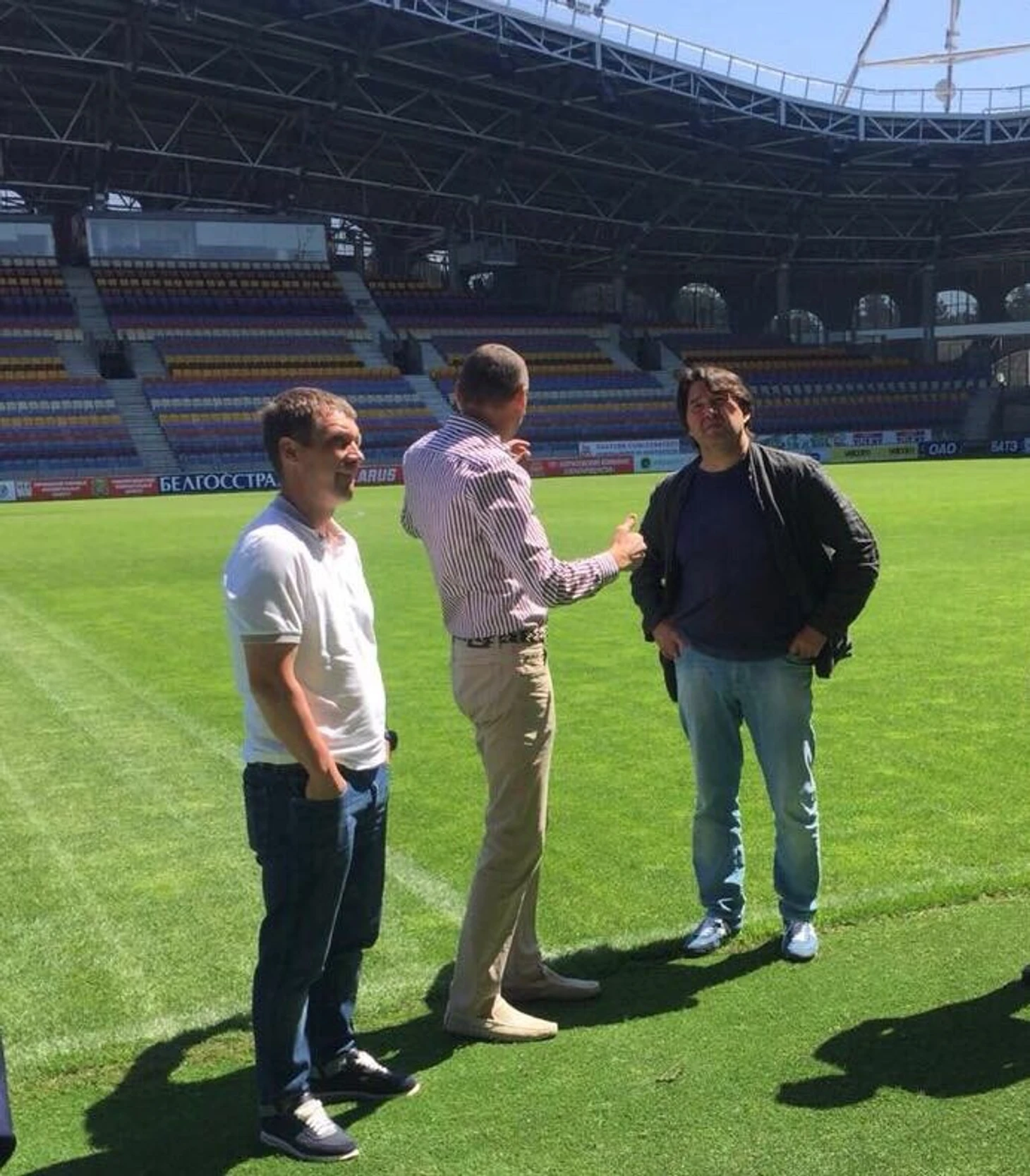Если кто-то хочет найти след Виктора Гончаренко, бывшего главным тренером и в БАТЭ, и в «Уфе», то этого сделать, на первый взгляд, не получается. Поскольку на момент открытия «Борисов-Арены» Гончаренко был тренером «Кубани». Но… барабанная дробь! Вот фотография от 1 июня, на которой Гончаренко и генеральный директор уфимского клуба Шамиль Газизов на газоне этой самой «Борисов-Арены». Судя по всему, Гончаренко здесь выступил в качестве посредника, который свёл уфимскую и белорусскую стороны.