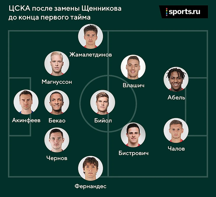 4. Уже на 30-й минуте Гончаренко пришлось делать первую замену: вместо травмированного Щенникова вышел Чалов. После этой перестановки Тимур Жамалетдинов ушел на позицию левого латераля.