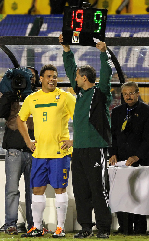 Кстати, после матча с голландцами Фреда, очень много критиковали, но в результате он доказал, что его критиковали зря. Этим голом Фред заработал себе место на предстоящем Копа Америка. После гола все игроки подняли показательные пальцы правых рук. Именно так праздновал свои голы Роналдо на ЧМ 2002. Роналдо же на 30-й минуте заменил именно Фреда. На 32-й минуте Феномен впервые почувствовал на собственных ногах снаряд своего прощального матча. 4 минуты спустя у него был первый шанс для взятия ворот. Он получил хороший пас от Неймара, но румынский голкипер был на месте. На 39-й минуте Роналдо имел еще более реальный шанс. Неймар дал великолепный пас на Робиньо, который в свою очередь отправил мяч Феномену, но Роналдо не смог забить. Мяч взлетел на трибуны. Роналдо улыбнулся и поблагодарил Робиньо за пас. На 42 минуте у Роналдо была последняя возможность забить. Румынский голкипер, Татарусану опять был на месте. Наверное он через годы расскажет своим внукам, что именно он был тем человеком, который не дал забить великому Роналдо в его прощальном матче.