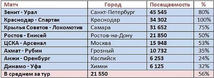 Обзор посещаемости 4 тура РПЛ