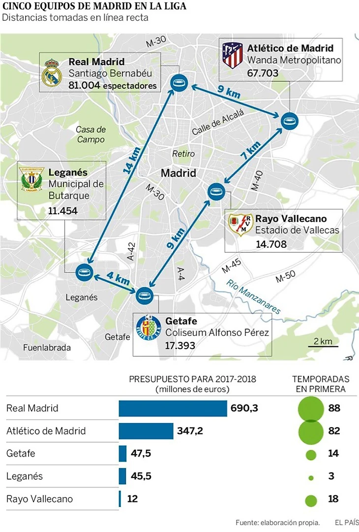 Сезон 2018/19 уникален для Мадрида тем, что сразу 5 команд из этого города принимают участие в высшем дивизионе, а именно: «Атлетико», «Реал», «Леганес», «Райо Вальекано» и «Хетафе».