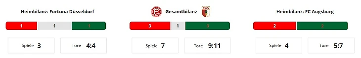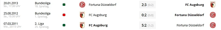 В сезоне 2012/13 "Аугсбург" и "Фортуна" боролись за выживание. Баварцы тогда провалили первый круг, набрав всего 9 очков, а вторую часть сезона начали с победы в Дюссельдорфе. Перед заключительным туром "Фортуна" шла 15-ой, а "Аугсбург" был в зоне стыковых матчей. Однако по итогам сезона "Фортуна" отправилась во Вторую Бундеслигу, "Аугсбург" же сохранил прописку в высшем дивизионе.