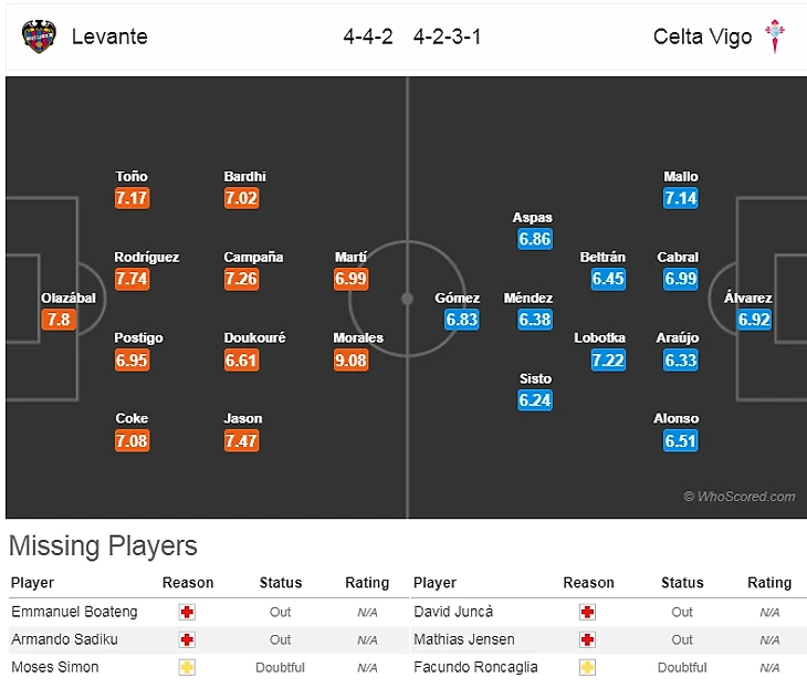 На что обратить внимание: На полузащиту гостей. Сначала суровые эйбарцы потеряли получившего рецидив травмы Педро Леона(6,5), а теперь к нему добавился ещё и Фабиан Орельяна(6,5). Кроме хавбеков повреждение имеет Рубен Пенья(5,5), но он хотя бы вошел в итоговую заявку.