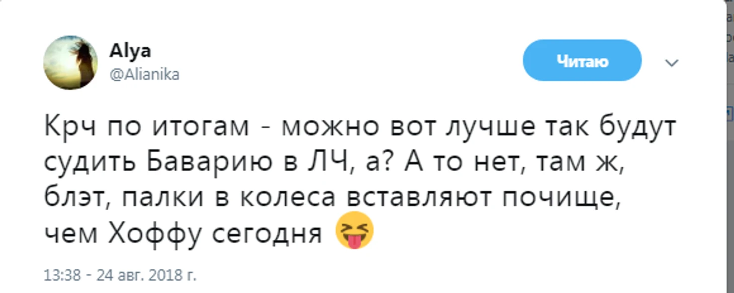 А твит с судейством в ЛЧ - так все просто , там играют не Хоффы и Аугсбурги , а Реал и Барселона . играть просто лучше и все .