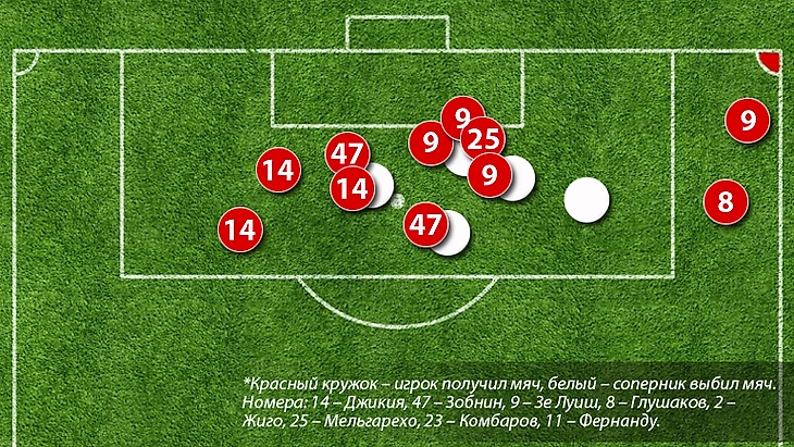 Рядом с Зе Луишем – всегда Мельгарехо. Так сопернику сложнее сориентироваться. Все внимание сосредоточено, конечно, на Зе Луише, но тут на авансцену выходит парагваец. Это мы и увидели в матче с "Динамо". Жиго, еще один ключевой исполнитель, играет на дальней штанге, но успешен пока только при подачах с левого фланга. Так, например, был повержен "Краснодар" – находившийся на дальней штанге Жиго скинул мяч Зе Луишу.