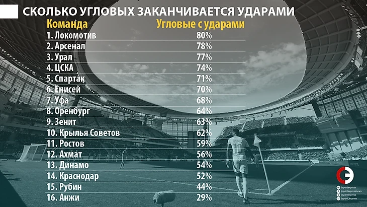 От углового флажка подают двое – Промес (с обоих флангов) и Самедов (с правого), когда они на поле. На счету обоих в этом сезоне есть результативные "стандарты". С правого фланга подачи идут чаще на ближнюю штангу. Но многое зависит от соперника – "Спартак" тоже изучает игру оппонентов у своих ворот. Так, в матче с "Локомотивом" все пять подач пошли на дальнюю штангу. А с "Анжи" больше было не подач, а розыгрышей.
