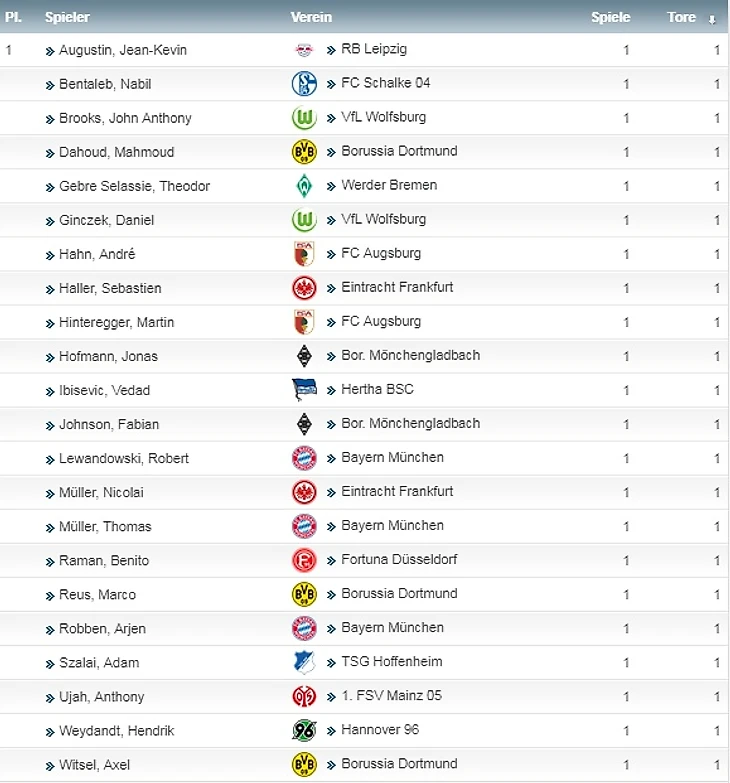 Гол Огюстена – первый гол РБ Лейпциг в Бундеслиге, забитый на первой минуте игры.