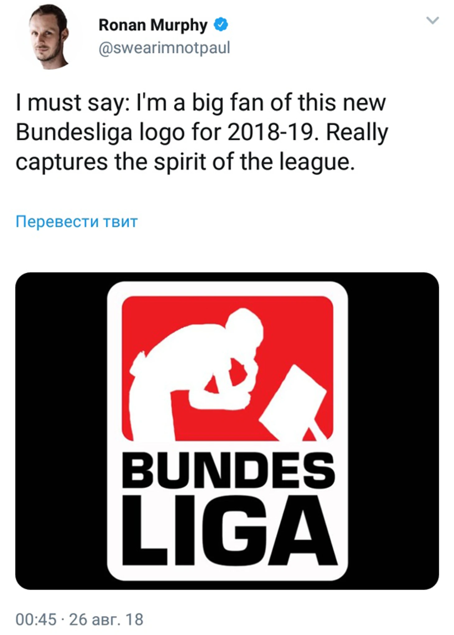 "Я должен признаться - мне так нравится новый логотип Бундеслиги для сезона 2018-19. Действительно передаёт дух лиги!"