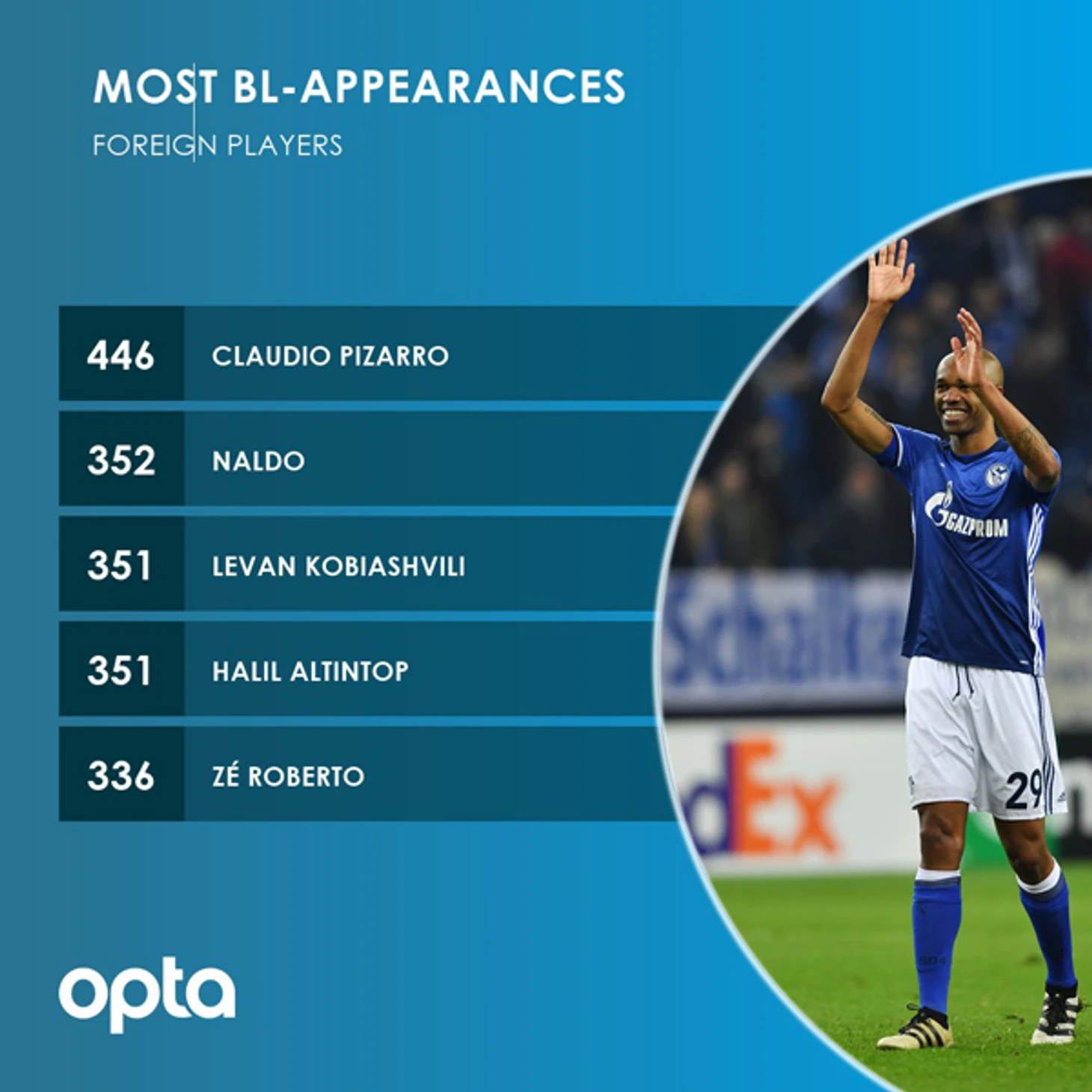 Клаудио Писарро появился на поле в Бундеслиге в 447-й раз.