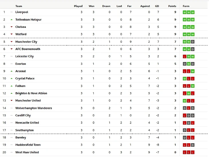 - По первым трём матчам наибольшее впечатление производят Ливерпуль с Тоттенхэмом.Что для Клоппа, что для Почеттино сезон 18-19 является ключевым в плане развития их команд.Обоим нужен шаг вперёд - и, судя по старту сезону, этот шаг они вполне могут сделать.