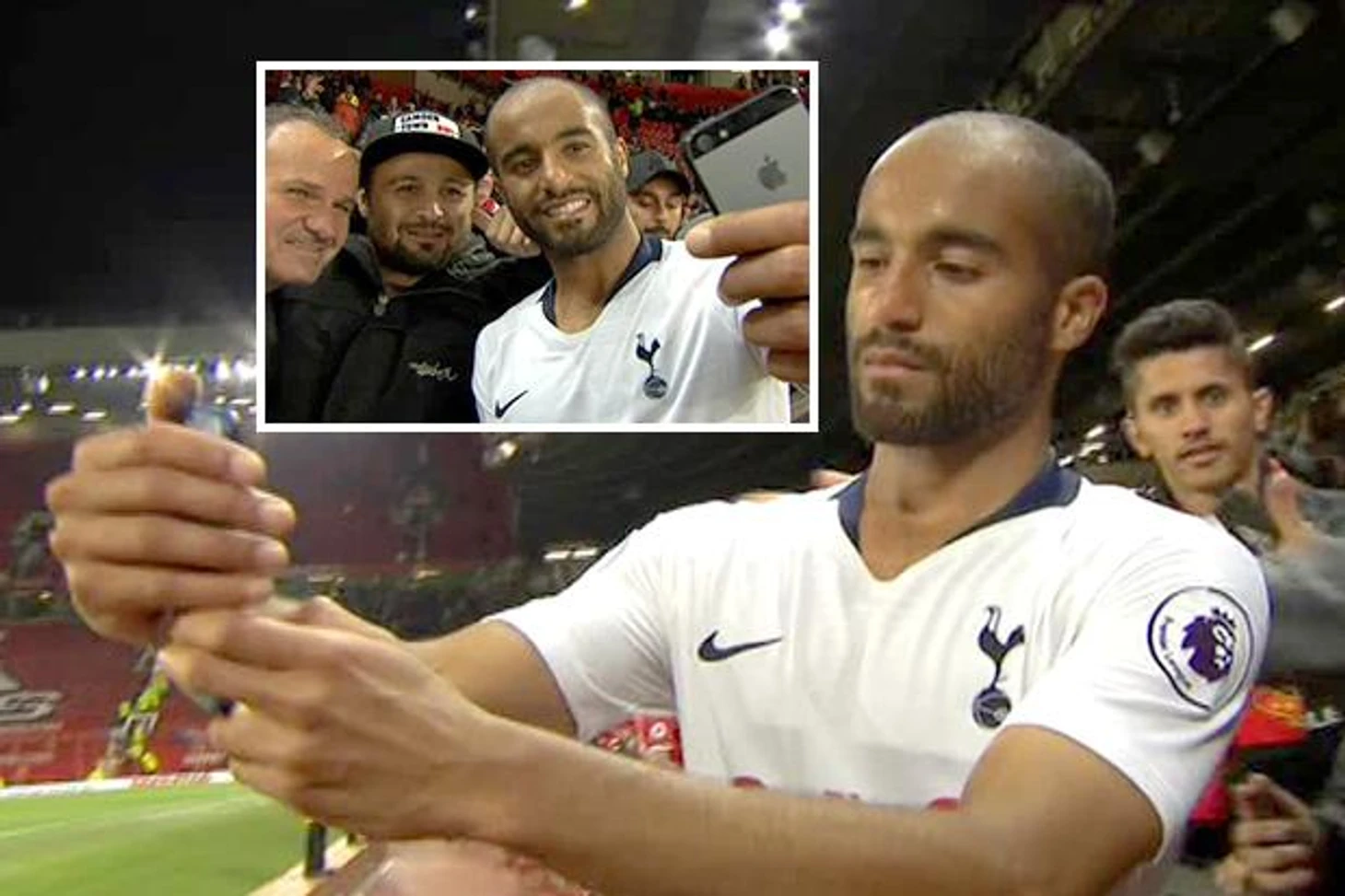 Бразильский игрок "Тоттенхэма" Лукас Моура отметился дублем в ворота "Манчестер Юнайтед" (0:3), и после матча был рад сфотографироваться с болельщиками хозяев.