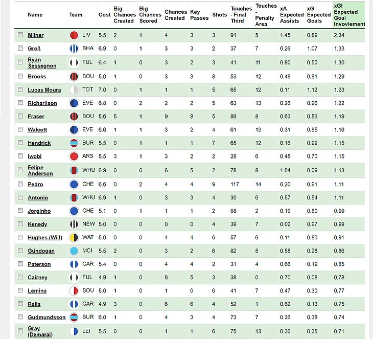 Смотрим кем можно заменить Риша. Статистика за 3 тура. Сортировка по xGI.