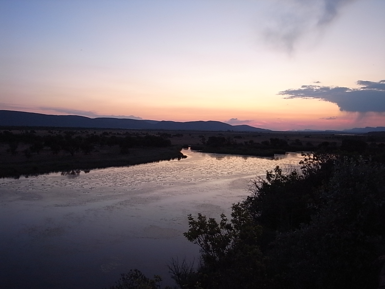 Закат на Лимпопо. Видно вверх по теченью были дожди.