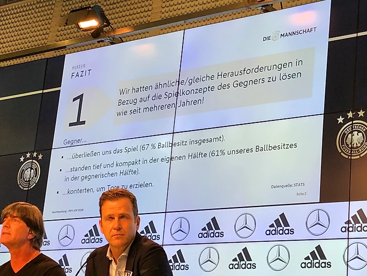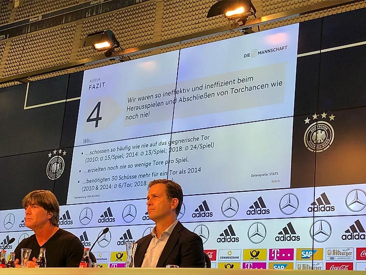 На пресс-конференции 29 июня Йоахим Лёв представил свой анализ прошедшего ЧМ и причин вылета сборной Германии. Многие немецкие журналисты остались недовольны, потому что они ожидали большего после двухмесячного молчания тренера. Об отсутствии страсти и тактической гибкости немецкие СМИ написали сразу же после вылета сборной, поэтому слова Лёва не стали для них откровением.